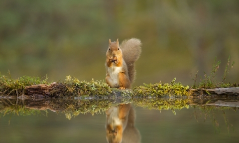 Globally, the IUCN classes the red squirrel as a species of ‘least concern’ because of its numbers across its entire Eurasian range, although its population trend is decreasing. However, the red squirrel is classed as endangered in England and Wales, and overall in Great Britain due to competition and disease transmission from introduced non-native grey squirrels. They are classed as near threatened in Scotland, where 75% of the UK’s red squirrel population is found, as there are still areas free of grey squirrels. Northern Ireland’s classification is currently being updated.