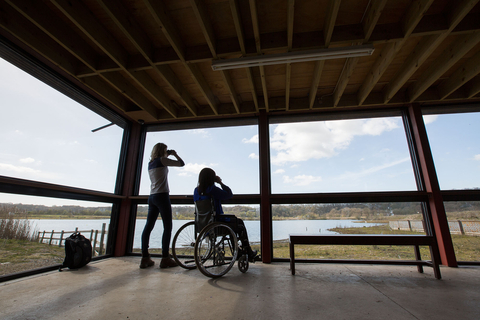 Adapted toilets are on the Visitor Village. Please note that there are no toilets out on the reserve.