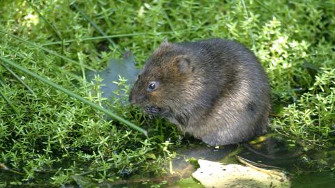 A water vole nibbling vegetation at Lunt Meadows nature reserve