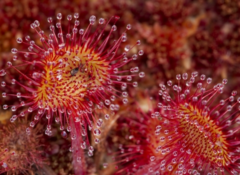 We are working to reintroduce classic peatland species such as common and hare’s tail cotton grass, cross-leaved heath and sphagnum mosses. And with hundreds of thousands of specimens planted to date and more planned across our sites, significant changes can already be seen. We have also worked closely with the Northwest Rare Plants Initiative on this project to reintroduce a number of rare plant species, such as the carnivorous great sundew, oblong-leaved sundew, lesser bladderwort, and other rare wetlands specialists including white-beaked sedge and bog asphodel, many of which were completely absent.