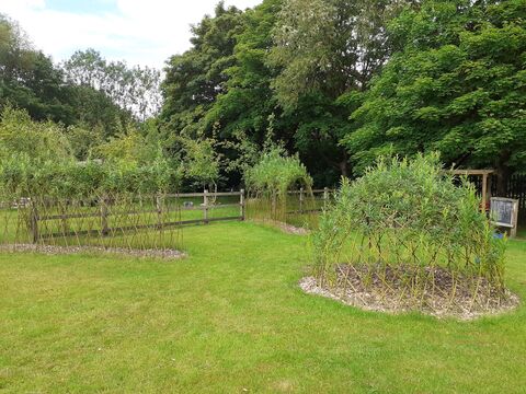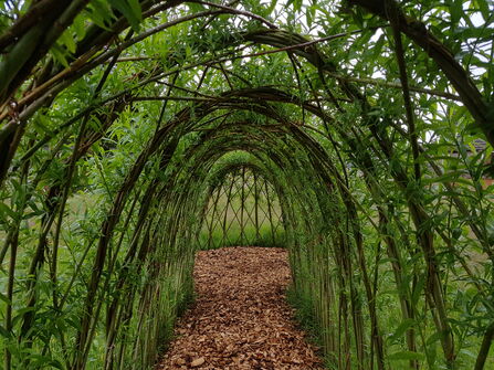 Living domes, tunnels, arches and fedges (living woven fences) made from willow are idea for breaking up spaces, defining boundaries and creating enchanting entrances. Willow tunnels and fedges act like hedgerow highways, providing cover for all sorts of animals as well as provide foraging opportunities for birds and insects alike. Fedges also provide a green alternative to traditional fencing, while new growth can be used for crafts.