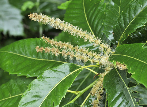 The sweet chestnut has long leaves with large teeth along their edges, and soft-spined fruit cases that contain two or three chestnuts.Distribution