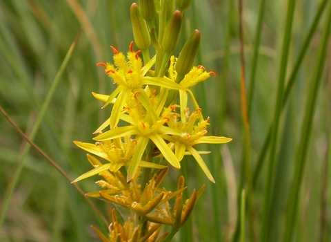 The Latin name of bog asphodel, ossifragum, literally translates as 'bone-breaker'. This unassuming plant acquired this violent name because it was believed that the livestock that grazed on it got brittle bones. However, it was actually the calcium-poor pastures that caused the problem.The Wildlife Trusts are working to restore and protect our heathlands by promoting good management, clearing encroaching scrub and implementing beneficial grazing regimes.